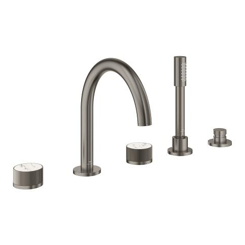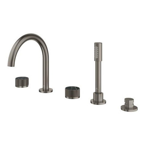 Individualise your bathroom with the GROHE Atrio Private Collection 5-hole bath combination in elegant satin graphite by selecting the control elements according to your preferences.