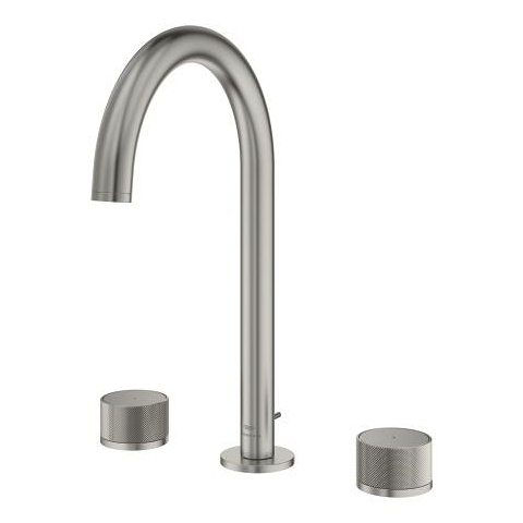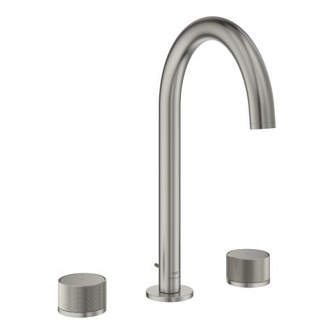 Immerse yourself in a world of elegance and beauty with the GROHE Atrio Private Collection, part of our exclusive SPA portfolio – combining timeless aesthetics, the latest technology and the exceptional quality, manufactured in Germany. The surface in chic satin steel is hard-wearing and easy to clean. Discover the inner values of this GROHE Atrio Private Collection 3-hole basin mixer in L-size: first-class ceramic components enable smooth, stepless operation and limit water consumption to 5 l/min (at 3 bar) in an environmentally friendly way – without sacrificing performance. With a convenient installation height of 291mm, it provides plenty of space between the spout and washbasin. This model offers you maximum flexibility thanks to the swivel spout (150° or 360°), which can also be fixed if required. No need to get your hands wet anymore – simply use the small rod on the back of the tap to operate the convenient pop-up drain for easy opening and closing. You have the choice of equipping this mixer tap with the following inserts for knob controllers: 48460000 (White Attica Caesarstone) or 48461000 (Vanilla Noir Caesarstone) GROHE Atrio Private Collection – for a personalised touch in the bathroom.